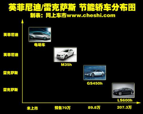英菲尼迪與雷克薩斯雖然同屬日系豪華品牌,但雷克薩斯一直致力于油電混合動(dòng)力車型的設(shè)計(jì)和研發(fā),而且較早將混合動(dòng)力車型引入國(guó)內(nèi),旗下的RX450h、GS460h和LS600hl等車型均得到了國(guó)內(nèi)消費(fèi)者的認(rèn)可。不過(guò)雷克薩斯混合分別為SUV和D級(jí)豪華轎車,較高的售價(jià)(廠商指導(dǎo)價(jià)為94.1萬(wàn)——207.3萬(wàn)之間)則讓不少消費(fèi)者望而怯步。而英菲尼迪即將引入的兩款新車級(jí)別相對(duì)較低,這種合理的市場(chǎng)定位不僅降低了消費(fèi)者購(gòu)車的門檻。