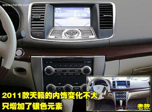 在內(nèi)飾方面,新天籟的中控臺與老款相比沒有明顯變化,按鍵錯落分明,布局合理。大尺寸液晶顯示屏幕放置在正中間,集合了NAVI衛(wèi)星導(dǎo)航、DVD及倒車影像功能。控制臺做工精致,人性化的角度讓你不需低頭便可操作。三個圓形自發(fā)光儀表盤,簡潔大方、清晰易讀。