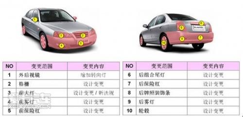 該車是伊蘭特繼2007年推出小改款后的又一次改款。本次改款以外觀升級為主,包括全新造型的保險杠,更加時尚的大燈及后尾燈,還有全新款式的輪轂造型等等。