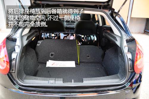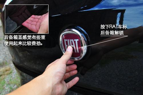 后備箱開啟采用了電磁感應(yīng)按鈕,稍用力按壓FIAT標(biāo)志即可開啟一個角度,設(shè)計(jì)頗為精巧。后備箱的容積并不算大,擱下一個旅行背包已經(jīng)占據(jù)了1/3的體積,后排座椅支持4比6放到,雖然不能完全放平,但是也為后備箱提供了更多空間?傊,博悅的后備箱應(yīng)付日常使用是完全沒有問題的。只是后備箱蓋感覺有些重使用起來稍稍有些費(fèi)勁。