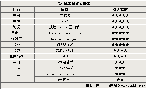 在這屆洛杉磯車展上,12款新車首發(fā)涵蓋了美、德、日等廠商,在車型類型則有轎車、敞篷跑車、SUV、MPV等,除此之外還有純電動(dòng)車登場(chǎng)。這其中君威GS、9-4X、攬勝Evoque 五門版等6款車預(yù)計(jì)明年引入國(guó)內(nèi),其他如奧迪Q5混合動(dòng)力、克萊斯勒200、純電動(dòng)RAV4也有引入的可能。