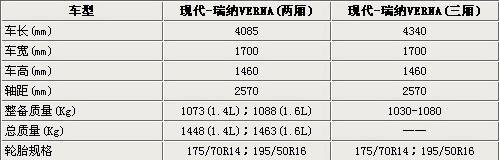 現(xiàn)代瑞納VERNA與i20同平臺生產(chǎn),兩廂車型在前臉設(shè)計(jì)上與三廂不會有太大的不同,車身尺寸上除了長度外,其他與三廂車型基本相同,三廂版瑞納,寬為1700mm,高為1460mm,軸距為2570mm,車身比雅紳特要大了不少。關(guān)于兩廂版瑞納的詳細(xì)信息請參見下表: