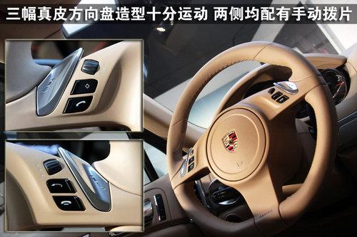 混合動(dòng)力版卡宴配備了與911 Turbo相似的方向盤(pán),其手感自然無(wú)需多言,牢靠扎實(shí)的握感,使你對(duì)它有著極高的駕駛欲望,兩側(cè)分別配備了鋁制換擋撥片,3點(diǎn)及9點(diǎn)鐘方向還集成了語(yǔ)音免提及車(chē)輛信息按鍵,而巡航系統(tǒng)則被裝配在了方向盤(pán)的后方位置。