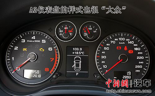 和奧迪大部分車型的一體式儀表和中控臺比起來,A3儀表盤的樣式也很“大眾”。雖然沒有MMI系統(tǒng),但行車電腦功能強(qiáng)大依舊。