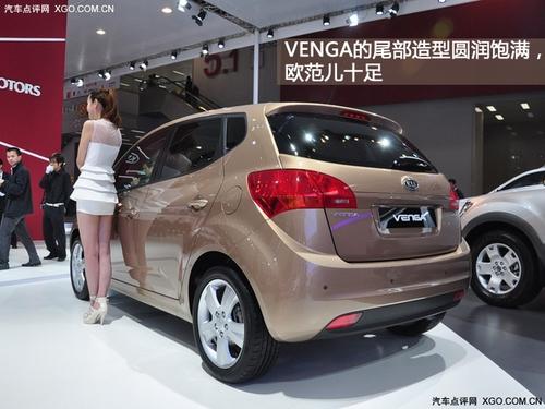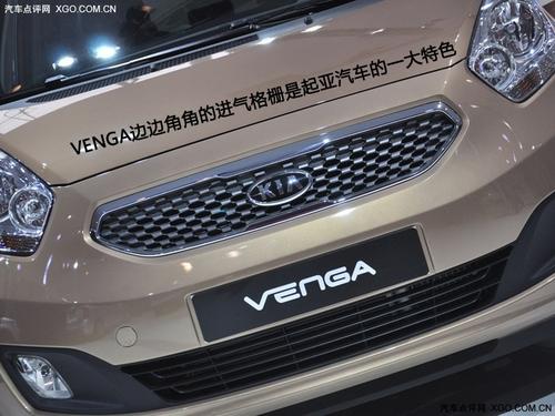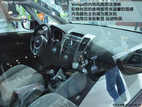 起亞Venga外觀造型與曾亮相日內(nèi)瓦車展的No.3概念車相仿,長4068mm,寬1765mm,高1600mm,軸距為2615mm,其后排座椅可以放倒。其內(nèi)飾將經(jīng)過巧妙的設計使內(nèi)部空間最大化。