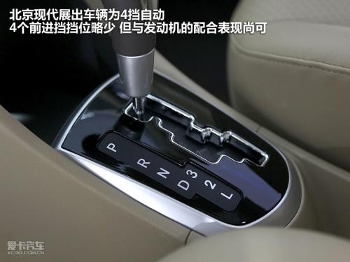 與之相匹配的仍為5擋手動與4擋自動兩款變速箱,北京現(xiàn)代展出車輛為4擋自動,4個(gè)前進(jìn)擋擋位略少,但與發(fā)動機(jī)的配合表現(xiàn)尚可。 (周航)
