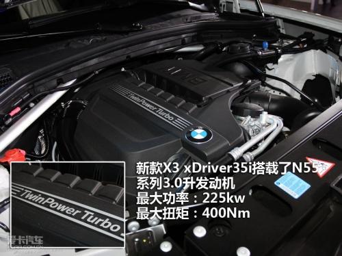動(dòng)力方面,新款X3xDriver35i搭載了動(dòng)力更強(qiáng)的N55系列3.0升發(fā)動(dòng)機(jī),配合雙渦輪增壓可以發(fā)揮出306馬力的最大功率和400牛米的最大扭矩,官方給出的百公里油耗僅為8.8升。另外,xDriver全時(shí)四驅(qū)系統(tǒng)也是X3的全系車型標(biāo)準(zhǔn)配置。