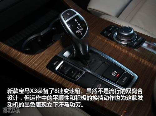 在明星級(jí)發(fā)動(dòng)機(jī)的背后,我們找到了這款陸續(xù)裝配寶馬全車系的8前速變速箱。雖然不是流行的雙離合設(shè)計(jì),但運(yùn)作中的平順性和積極的換擋動(dòng)作也為這款發(fā)動(dòng)機(jī)的出色表現(xiàn)立下汗馬功勞。使X3xDrive35i從靜止加速至100公里/小時(shí)僅需5.7秒。最高車速可達(dá)245公里/小時(shí)。 (林琦)