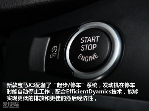 新款寶馬X3配備了“起步/停車”系統(tǒng),發(fā)動(dòng)機(jī)在停車時(shí)能自動(dòng)停止工作,配合EfficientDyamics技術(shù),能夠?qū)崿F(xiàn)更低的排放和更佳的然后經(jīng)濟(jì)性,當(dāng)然如果您不喜歡發(fā)動(dòng)機(jī)頻繁的起起停停,也可以通過(guò)一鍵啟動(dòng)按鈕旁邊的小按鍵關(guān)閉該功能。
