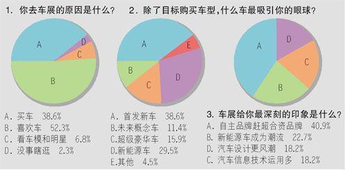 對(duì)廣州車(chē)展你感興趣嗎?車(chē)展上什么車(chē)最吸引你的眼球?本屆車(chē)展給你最深刻的印象是什么?上周,本報(bào)聯(lián)合新浪汽車(chē)進(jìn)行了調(diào)查,結(jié)果顯示,大部分的讀者對(duì)汽車(chē)有著濃厚的興趣,而且對(duì)新車(chē)以及新能源車(chē)的關(guān)注度遠(yuǎn)遠(yuǎn)超過(guò)了明星車(chē)模。