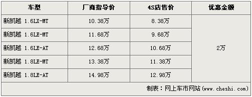 據(jù)4S店銷(xiāo)售人員介紹,新凱越分為1.6L與1.8L兩種排量車(chē)型,目前新凱越的1.6L全系優(yōu)惠2萬(wàn)元,較上個(gè)月的優(yōu)惠降幅有所回縮。經(jīng)優(yōu)惠后,全系最低配的1.6LX-MT車(chē)型售價(jià)回升到了8.38萬(wàn)元。經(jīng)優(yōu)惠后,1.8L手動(dòng)和自動(dòng)兩款車(chē)型售價(jià)也回升到了11.38萬(wàn)元和12.98萬(wàn)元。銷(xiāo)售人員還介紹,目前1.6L車(chē)型店內(nèi)無(wú)現(xiàn)車(chē),欲購(gòu)買(mǎi)者需交訂金2000元,下個(gè)月才可提車(chē)。