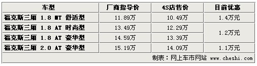 據(jù)4S店銷售人員介紹:目前?怂谷龓1.8升三款車型現(xiàn)車充足,尤其銀色、灰色、藍(lán)色、黑色車型現(xiàn)車較多,手動(dòng)擋車型目前優(yōu)惠1.4萬(wàn)元,優(yōu)惠后僅售10.49萬(wàn)元,1.8升自動(dòng)版車型優(yōu)惠1.2萬(wàn)元。2.0升車型目前現(xiàn)車較少,顏色也不齊全,訂車需等待3周左右,目前優(yōu)惠1.1萬(wàn)元。