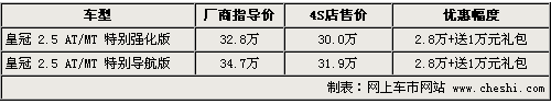 豐田皇冠自引入國內(nèi)以來,在中高級豪華轎車行列中擁有較好的口碑。作為一汽豐田旗下的旗艦車型,皇冠將迎來一次全面的改款,以應對同級車的競爭。全新的外觀以及將新推出一款4.3排量等諸多亮點使其成為最受矚目的車型之一,同時現(xiàn)款車型也出現(xiàn)了較大幅度的優(yōu)惠,具體行情如下: