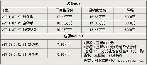 名爵MG3/MG7齊降價(jià) 最高優(yōu)惠達(dá)1.5萬(wàn)元