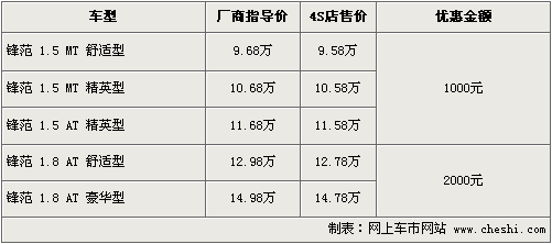 筆者了解,目前鋒范的優(yōu)惠幅度仍然保持最高2000元的優(yōu)惠幅度,其中1.5排量優(yōu)惠現(xiàn)金1000元,精英版和舒適版均有不用顏色現(xiàn)車供應(yīng),部分款色還需要預(yù)訂,1.8排量最高優(yōu)惠現(xiàn)金2000元。消費者到店還可以有一定幅度的讓利。部分經(jīng)銷商還有禮包增送。