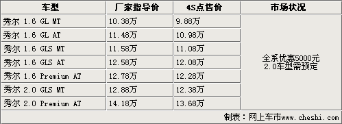 據(jù)東風(fēng)悅達起亞4S店銷售人員介紹:現(xiàn)在購買起亞秀爾全系均可以得到5000元的現(xiàn)金優(yōu)惠。目前秀爾現(xiàn)車充足,顏色也比較齊全,現(xiàn)車顏色以白色、銀色、橙色、紅色為主。2.0車型需要預(yù)訂,需要繳納訂金5000元,一周左右可以提到現(xiàn)車。北京地區(qū)各4S店由于訂單不同,各店銷售的現(xiàn)車顏色有所不同,消費者在購買前可以多去幾家4S店。
