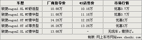 駿捷wagon目前上市已經有很長時間了,這款車在春節(jié)前的優(yōu)惠比較高,但近期的價格明顯有所提升。如果不是買斷銷售,駿捷wagon 1.8T車型很難有2萬元以上的優(yōu)惠幅度。但是,銷售情況比較好的駿捷wagon 1.8L車型,在價格優(yōu)惠方面卻并沒有太多增進。