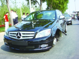 昨天下午2時30分許,來自內(nèi)蒙古赤峰市的李先生,在清河附近的博瑞祥馳汽車銷售服務中心新買了一輛奔馳轎車。沒想到新買的“大奔”剛上路不到1公里,左前輪就飛了出去,好在當時的車速不快,李先生幸未受傷。