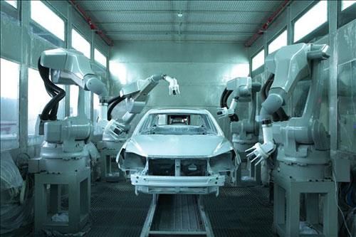 涂裝車(chē)間僅從設(shè)計(jì)理念就能看出它的與眾不同。帝豪積極響應(yīng)國(guó)家“節(jié)能減排”號(hào)召,將綠色、環(huán)保、節(jié)能的理念滲入到這個(gè)工廠設(shè)計(jì)的各個(gè)環(huán)節(jié),尤其在涂裝工藝設(shè)備上,采用噴漆采用的是符合環(huán)保理念的德國(guó)水性涂裝工藝——噴涂機(jī)器人和自動(dòng)調(diào)漆、輸漆、噴漆、換色的調(diào)輸漆系統(tǒng),從而保證了漆面的均勻和車(chē)身表面的光澤度和鮮映性,涂料利用率也可達(dá)98%以上。帝豪EC718/ EC718-RV產(chǎn)品所用的漆是水性漆,非常環(huán)保,目前國(guó)內(nèi)只有3至4家合資廠采用,它的溶劑是水,對(duì)環(huán)境沒(méi)有一點(diǎn)污染。