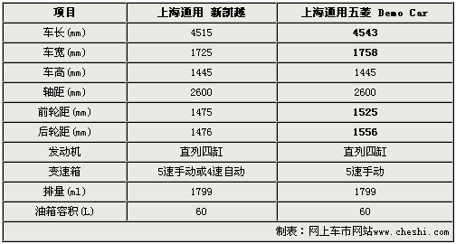 在去年廣西自治區(qū)成立50周年的慶典上,一款在凱越平臺上重新設計、被稱作“Demo Car”的概念車應廣西政府要求公開展示,該車型懸掛了五菱車標。通過以下基本參數(shù)對比,讓我們看看上海通用五菱自主轎車與新凱越有著怎樣的共性和差異。