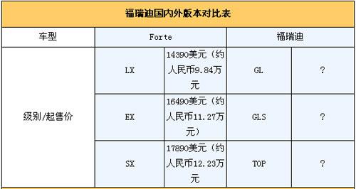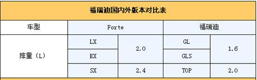 總結(jié):從上面的對比我們發(fā)現(xiàn),F(xiàn)orte國內(nèi)外兩種版本之間的差異還是很大的,其中動力單元差別最顯著,這主要是由國情和消費能力所決定的。目前國內(nèi)市場上小排量車型大行其道,尤其是1.6L車型更是炙手可熱,福瑞迪今后的重點也將會落在1.6L車型上,至于2.0L車型更多的將擔負起拉升品牌形象的重任。具體價格車型配置等信息,我們將在上市第一時間為你詳細報道,敬請大家關(guān)注!