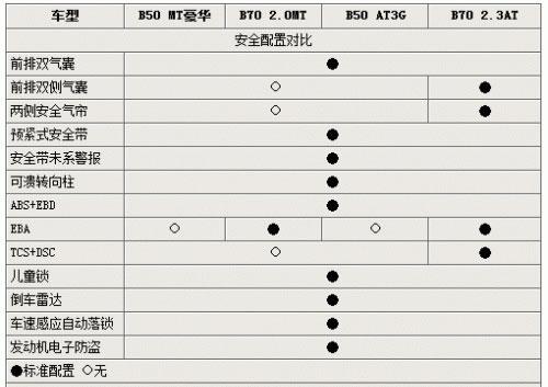 通過此項(xiàng)的對比,可以發(fā)現(xiàn)兩款兄弟車型在外觀以及內(nèi)部的絕大多數(shù)配置均極為近似,僅僅是在高配車型之上有了一些不同的豪華系統(tǒng),如B70 2.3AT豪華車型上的GPS以及DVD系統(tǒng),還有B50 AT3G版之上的多媒體娛樂系統(tǒng)等等。而B50全息均配備了定速巡航系統(tǒng),也是新車的一大亮點(diǎn)!