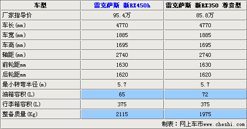 雷克薩斯新RX350和RX450h的售價相差了將近10萬元。兩款車型的車身尺寸完全一樣,軸距也都到達到了2740mm,這些數(shù)據(jù)都確保了它們擁有著寬敞的內(nèi)部空間。兩款車型的最小轉(zhuǎn)彎半徑都是5.7m,確保了它們在狹窄道路上的通過性能。在油箱方面,由于RX450h為混合動力車型,所以油箱容積要比汽油版車型小,只達到了65升。但是由于RX450h自身攜帶了大通量電池和電動馬達,所以自身重量要高于汽油版車型。