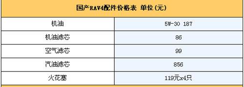 4.保養(yǎng)費:RAV4的首保為5000公里,保養(yǎng)間隔為5000公里,首保免費,質(zhì)保期為2年4萬公里。據(jù)了解RAV4每5000公里要經(jīng)歷一次小保養(yǎng),包括工時費在內(nèi)費用大概為375元,2萬公里的大保養(yǎng)在1000元左右,這樣算來6萬公里RAV4的總費用在5500元左右.平均每年2萬公里保養(yǎng)費用在1833元左右。