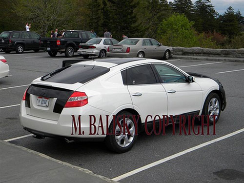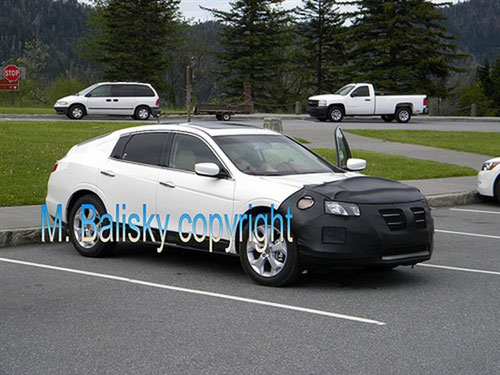 從諜照上看,雅閣Crosstour的車頂線條與在本屆紐約車展上亮相的謳歌ZDX概念車非常相似,車頂擺脫了傳統(tǒng)的“兩柱式”設(shè)計(jì),A柱與C柱被視覺沖擊感極重的一體式“溜背”車頂設(shè)計(jì)所取代。雖然此設(shè)計(jì)創(chuàng)新力極佳,但是后尾急降的弧度不知道會(huì)不會(huì)另后排乘客感覺到頭部空間不夠。