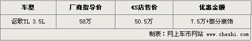 09新款的謳歌TL在去年12月份正式進(jìn)入國(guó)內(nèi)市場(chǎng)銷售,相比之前老款車型,09款在外觀、性能、排量上均有不同程度的提升。目前這款車可以優(yōu)惠現(xiàn)金7.5萬(wàn)元,同時(shí)還有部分裝飾贈(zèng)送,具體行情如下: