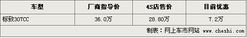 據(jù)4S店銷售人員介紹,目前標(biāo)致307CC優(yōu)惠幅度達(dá)到了7.2萬元,由原來的36萬元優(yōu)惠到了28.8萬元,同時(shí)銷售的還有一款導(dǎo)航版車型,售價(jià)為29.8萬元。目前現(xiàn)車方面較為緊張,個(gè)別顏色需要消費(fèi)者提前預(yù)訂。