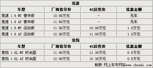 青年蓮花競速從上市后已經(jīng)有兩次官方降價,總降幅達兩萬元。據(jù)青年蓮花4S店銷售人員介紹,競速目前只有運動版兩款車型銷售,這兩款車型都可以優(yōu)惠1.9萬元,最低售價僅為10.08萬元。而剛上市時間不就的競悅目前也有6000元的優(yōu)惠幅度,而4S店銷售人員表示,如果到店還可以有更多的優(yōu)惠政策。