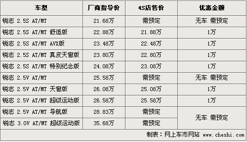 筆者從經(jīng)銷商處了解到,目前銳志全系可以優(yōu)惠現(xiàn)金1萬(wàn)。目前有白色、黑色等款現(xiàn)車供應(yīng),但運(yùn)動(dòng)版車型仍需要預(yù)定。據(jù)銷售人員介紹,銳志舒適版車型總體性價(jià)比較高,購(gòu)買的消費(fèi)者也較多。豪華版、導(dǎo)航版車型還需要預(yù)訂。