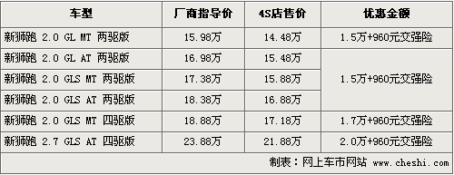 據(jù)4S店銷售人員介紹,目前購買獅跑可以贈(zèng)送960元的交強(qiáng)險(xiǎn),同時(shí)有1.5萬-2萬元不等的現(xiàn)金優(yōu)惠。兩驅(qū)標(biāo)準(zhǔn)版優(yōu)惠后售價(jià)僅為14.48萬元。目前經(jīng)銷商處有黑色、銀色等現(xiàn)車供應(yīng),藍(lán)色等款需要預(yù)定,訂金為2千元,月內(nèi)便可以順利提車。