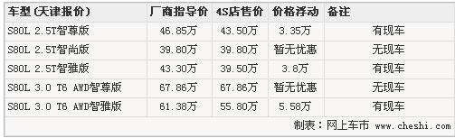 據(jù)天津中汽南方沃爾沃4S店的銷售人員介紹,目前除了入門級(jí)2.5T智尚版與頂級(jí)配置的3.0 T6 AWD智尊版兩款車型無現(xiàn)車之外,其它3款車型分別有不同程度的優(yōu)惠,熱銷車型 2.5T智尊版的售價(jià)已經(jīng)跌至40萬元以下,而3.0 T6 AWD智雅版的優(yōu)惠幅度達(dá)到了近6萬元,F(xiàn)車以黑色以及銀色居多,其它顏色預(yù)定等待一個(gè)月左右。