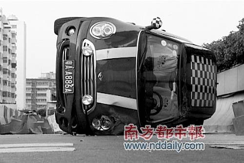 昨日早上6時30分許,一名帥哥帶著兩名女子,駕駛一輛紅色MINICOOPER在廣州越秀區(qū)下塘西路側翻。
