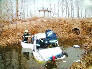 昨天下午5時(shí)52分,漷馬路京津高速橋邊,一白色兩廂轎車翻入路旁河溝里,一名男子被困車內(nèi)。經(jīng)過(guò)通州區(qū)馬駒橋中隊(duì)10分鐘救援,受困人員被成功救出。