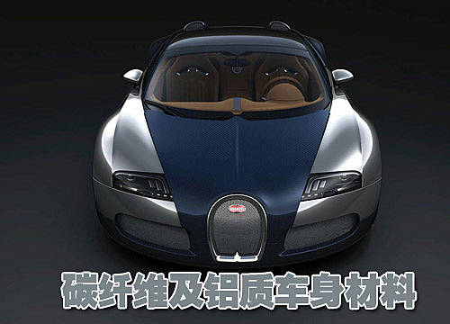 其車(chē)身外觀主要由碳纖維和鋁金屬構(gòu)成,其中碳纖維采用的藍(lán)色噴涂顏色,而其鋁金屬則是其本身的顏色,不過(guò)經(jīng)過(guò)了拋光處理。較大的輪轂采用的為午夜藍(lán)色以及金剛石刻磨的雙色調(diào)裝飾。車(chē)廂內(nèi)部采用了優(yōu)質(zhì)的Grand Sport真皮裝飾,營(yíng)造了內(nèi)部典雅和諧的格調(diào)。