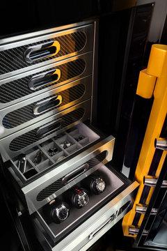 蘭博基尼特別版保險箱內(nèi)部擁有很多分層,可以方便、安全的存放不同的物品。如果您是蘭博基尼的車主,在配一款如此特別的保險箱,必然會非常惹人羨慕。不過,及時你將貴重的鐘表、首飾及珠寶等物品放入其中,您也仍然可以放心的駕駛自己的愛車去遠郊兜風(fēng)。