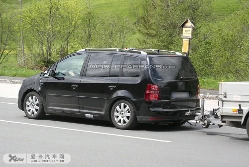 最近諜照記者首次在大街上拍到了下一代大眾途安測試車的照片,在它的后面還掛了一輛拖車。