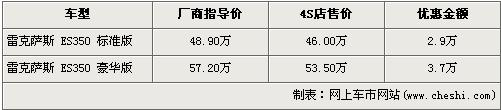隨著雷克薩斯ES240的即將引進(jìn),雷克薩斯ES系列的入門(mén)價(jià)格被放低,同時(shí)也加大了與同級(jí)車(chē)型的競(jìng)爭(zhēng)力度,并且據(jù)我走訪(fǎng)多家北京雷克薩斯經(jīng)銷(xiāo)店獲知,目前在售的雷克薩斯ES350的兩款車(chē)型均有現(xiàn)金優(yōu)惠。雷克薩斯ES350標(biāo)準(zhǔn)版售價(jià)48.9萬(wàn)元,經(jīng)2.9萬(wàn)元的優(yōu)惠后售價(jià)降到了46萬(wàn)元,雷克薩斯ES350豪華版的售價(jià)為57.2萬(wàn)元,經(jīng)3.7萬(wàn)元的優(yōu)惠后售價(jià)降到了53.5萬(wàn)元。