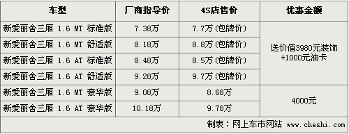 目前普通版新愛麗舍的部分車型采用了包牌銷售的方式,其中包括標(biāo)準(zhǔn)手動型、新愛麗舍標(biāo)準(zhǔn)自動型、新愛麗舍舒適手動型、新愛麗舍舒適自動型。只要購買其中任意一款車型。而另外兩款1.6豪華版并未在此次活動范圍內(nèi),但購車可以優(yōu)惠現(xiàn)金4000元。