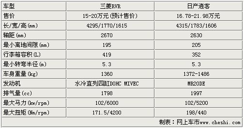 三菱RVR長(zhǎng)寬高分別為4295/1770/1615,軸距為2670mm,與競(jìng)爭(zhēng)車(chē)型逍客相比,車(chē)長(zhǎng)還要略小一些,而軸距上稍具優(yōu)勢(shì),離地間隙也比較接近,三菱RVR為195mm、逍客為205mm。而在動(dòng)力上RVR搭載的是4B10 1.8L發(fā)動(dòng)機(jī),最大功率102kw/rpm,而最大扭矩為171.5牛米。