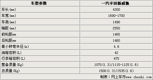一汽豐田的A0級小車威馳,被豐田汽車公司稱為是“專門為中國設(shè)計(jì)的全新車型”。豐田新威馳于08年正式推出,主要目標(biāo)消費(fèi)群體為80后的年輕人,其“生而簡酷”的特性已在年輕人群中引起極大反響。近日我們從豐田內(nèi)部人士處獲悉到,豐田威馳即將小改款,同時(shí)我們在第一時(shí)間得到改款后新威馳的圖片和車型參數(shù)。新款威馳在外形設(shè)計(jì)上將更加硬朗,與家族老大哥凱美瑞有幾分相似,在舒適配置上也會更加豐富,在車身尺寸和動(dòng)力系統(tǒng)方面與目前銷售車型相同。
