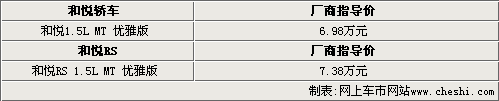 一直以性價(jià)比著稱的江淮和悅系列,憑借產(chǎn)品自身的優(yōu)勢在市場取得非常優(yōu)秀的成績,但從市場了解的情況來看,江淮和悅在4S店經(jīng)常會出現(xiàn)車型不全的情況。近日,網(wǎng)上車市網(wǎng)站獲悉,江淮汽車將在5月份推出全新和悅優(yōu)雅版車型,其中和悅優(yōu)雅版的廠家指導(dǎo)價(jià)為6.98萬元,和悅RS 優(yōu)雅版的廠家指導(dǎo)價(jià)為7.38萬元。