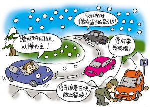 對于雪地的駕駛技巧,交警部門提醒車主,關(guān)鍵是以“慢”為主,并與前車保持足夠的剎車距離。然而,路況的復(fù)雜,讓很多駕駛員在發(fā)生側(cè)滑時感到緊張。“如果車輛打滑,方向盤要順著打滑方向輕輕地轉(zhuǎn),待車輪回正后,再輕輕地踩剎車。”“關(guān)鍵是要慢,平穩(wěn)地減速及輕踩剎車,絕對不要在冰雪濕滑的路面上猛起步,或緊急剎車。”杭城資深出租車司機師傅們紛紛提供雨雪天氣駕駛竅門。