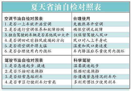 記者走訪4S店發(fā)現(xiàn),隨著天氣的炎熱,越來越多的經(jīng)濟(jì)車主因?yàn)榫痈卟幌碌挠秃,懷疑汽車質(zhì)量問題。記者調(diào)查發(fā)現(xiàn),排除產(chǎn)品故障外,影響夏天汽車油耗最主要的因素就是空調(diào)的使用不當(dāng)。此外,因天氣造成心情浮躁導(dǎo)致的急加油和急剎車等,也白白導(dǎo)致了汽油的浪費(fèi)。售后人員指出,在科學(xué)使用空調(diào)的情況下,百公里油耗增加1~2L,屬于正常的范疇。下面,我們將跟隨節(jié)油高手的步履,走進(jìn)夏日節(jié)油的世界。