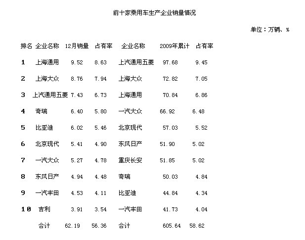 在產(chǎn)業(yè)調(diào)整與振興規(guī)劃指引下,2009年我國(guó)汽車(chē)市場(chǎng)迅速擴(kuò)容,銷(xiāo)量超過(guò)1364萬(wàn)輛,增幅達(dá)46.15%,首次銷(xiāo)量冠全球。與此同時(shí),市場(chǎng)競(jìng)爭(zhēng)愈加激烈,兼并重組之聲不絕于耳,“四大四小”車(chē)市座次悄然生變!八拇蟆彪m然地位鞏固,但內(nèi)部競(jìng)爭(zhēng)加劇,除上汽一枝獨(dú)秀霸主地位確立外,一汽、東風(fēng)、長(zhǎng)安銷(xiāo)量接近,一汽地位受到后兩者的挑戰(zhàn)!八男 敝,北汽、廣汽、奇瑞、重汽市場(chǎng)地位受到比亞迪、吉利等民營(yíng)車(chē)企的威脅,若不能利用產(chǎn)能擴(kuò)張和規(guī)劃賦予的“實(shí)施區(qū)域性兼并重組”的特權(quán)而快速成長(zhǎng),則很可能被民營(yíng)車(chē)企超過(guò)。