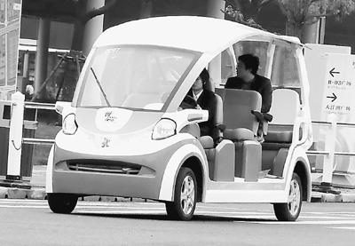 上海世博園內(nèi)運(yùn)行著太陽能、新能源汽車、LED照明工程等低碳應(yīng)用項目。圖為燃料電池觀光車正在世博園區(qū)載客運(yùn)行。