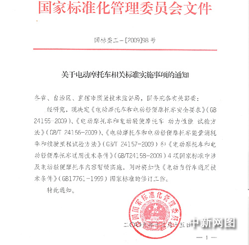 中新網(wǎng)12月16日電 今天,國家標準化管理委員會在其官方網(wǎng)站發(fā)出《關于電動摩托車相關標準實施事項的通知》。通知要求,《電動摩托車和電動輕便摩托車通用技術條件》等4項國家標準中,涉及電動輕便摩托車的內(nèi)容暫緩實施。